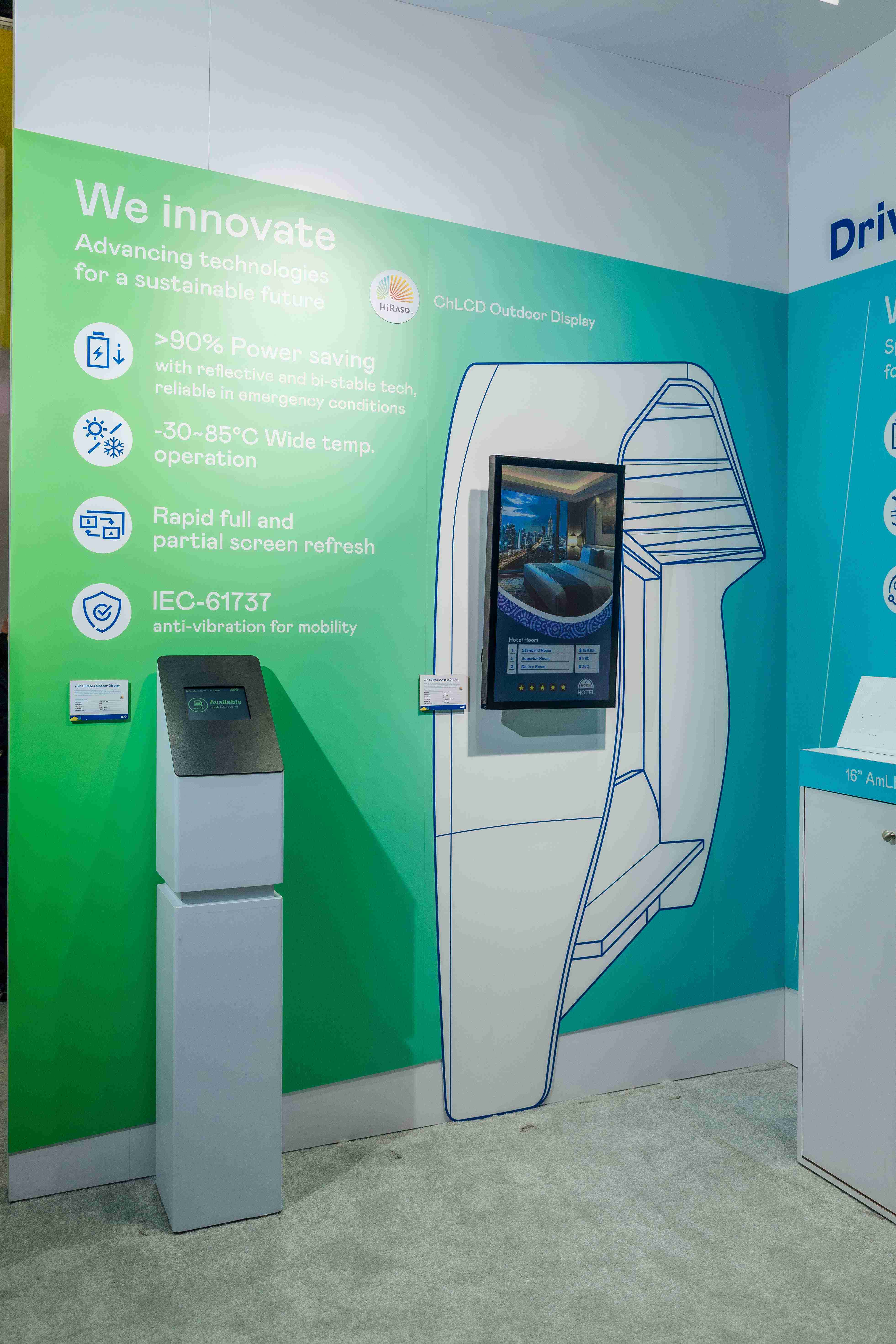 HiRaso胆固醇液晶显示器运用反射环境光线的方式,,,呈现影像显示时零耗能的环保省电诉求,,,,光线愈强愈能呈现绝佳的色彩饱和度及显示效果,,同时在摄氏-30度至85度间宽温的使用优势,,,为户外电子看板的新首选。。。。