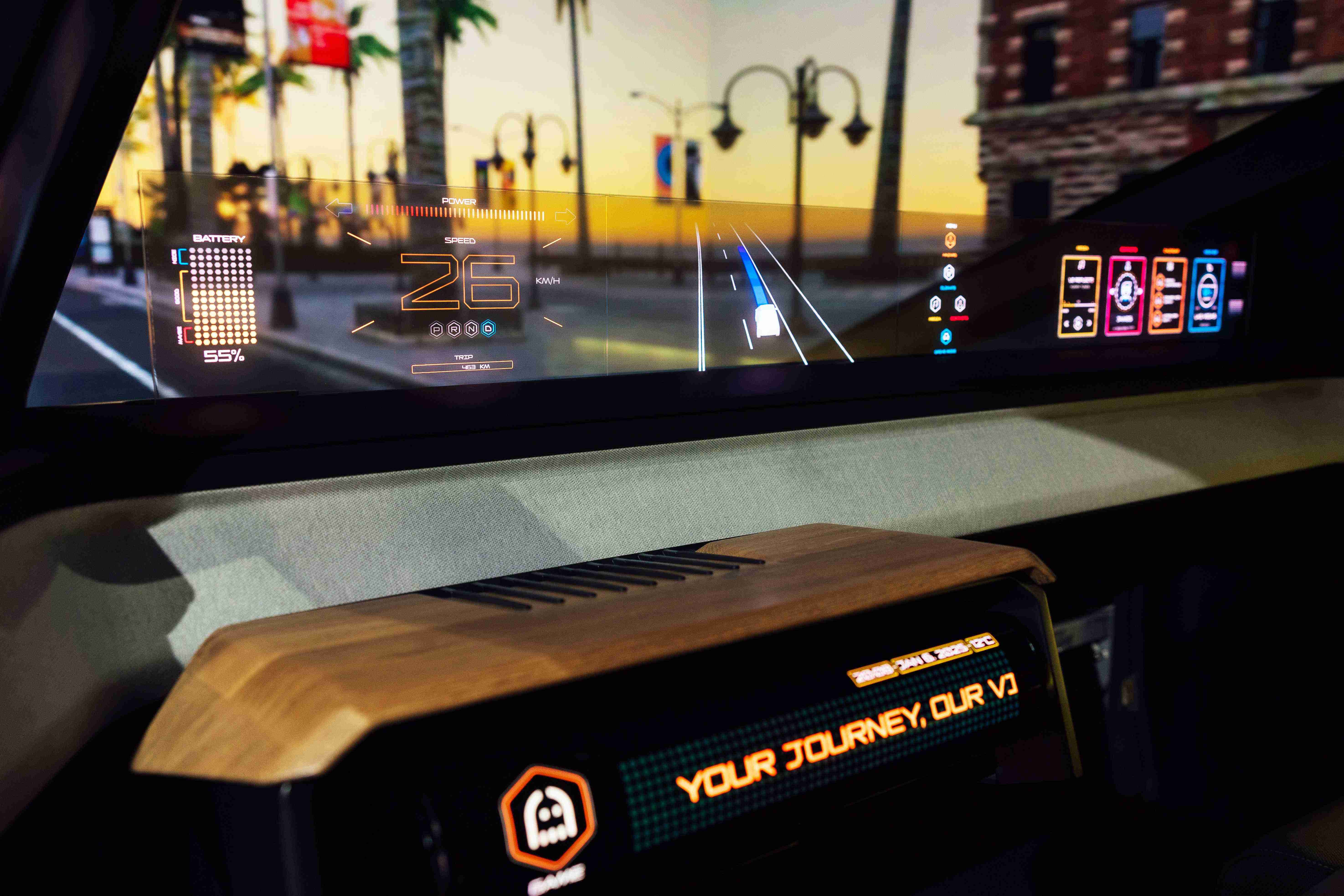 隐藏式智驾介面(Foldable Cruise Pilot)在不同模式下可以切换显示方式,,,在手动驾驶模式时,,,显示器可以在半收合状态下,,,,仍呈现所需资讯;自驾模式时,,,,显示器可以完全展开,,,满足不同的多媒体娱乐需求。。。 WepaySmart Cockpit 2025 在车头及车尾搭载合作伙伴Ennostar开发的互动式矩阵显示器(Interactive Matrix Display),,其突破传设计框架,,,,利用优化的光源整合技术,,提供更高亮度与对比度的显示效果,,营造驾车者个性化风格并传递讯息。。