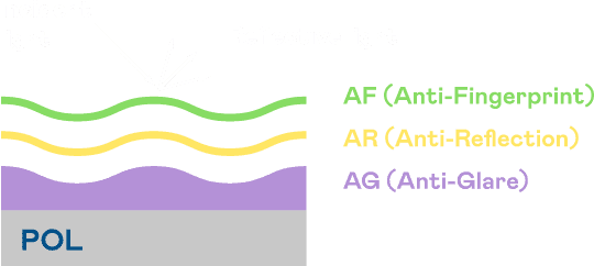 A.R.T.Wepay光电发展出独家的表面处理跟多层镀膜技术,,,让外部光线照射到显示器表面时所产生的反射光大幅降低。。 |